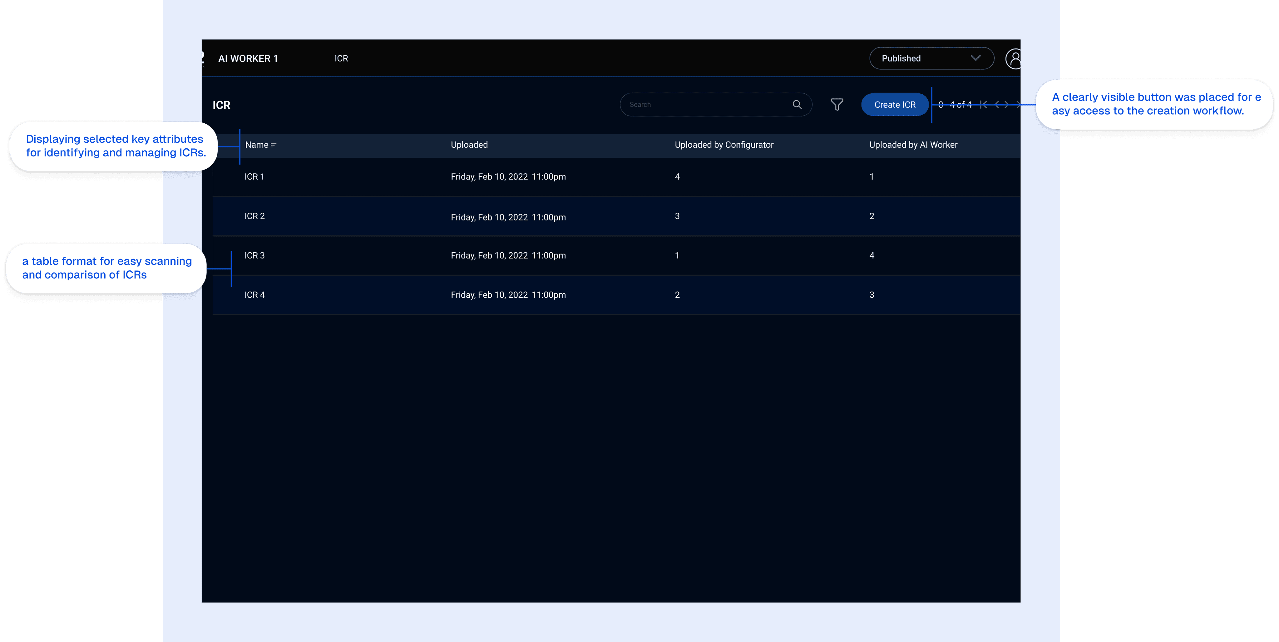 Prioritizing Actions: Making the “Create ICR” action easily accessible.